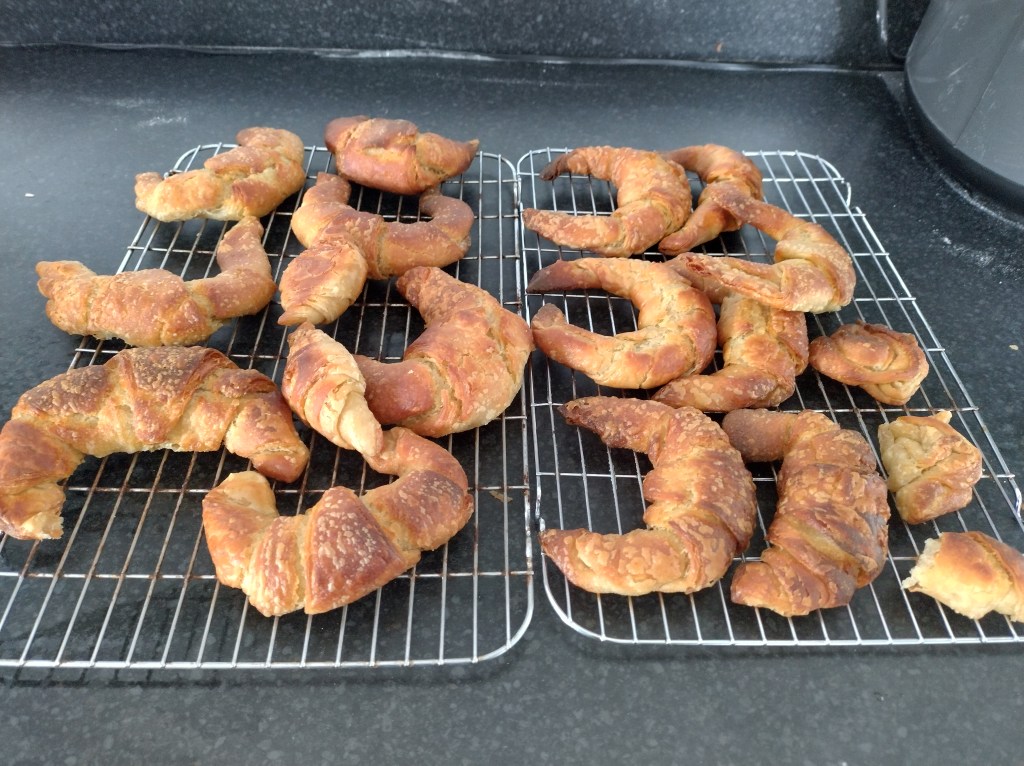 The croissants failed. I did everything right. You could see the lamination of the dough, the lovely layers, the right croissant shape. They did not rise.